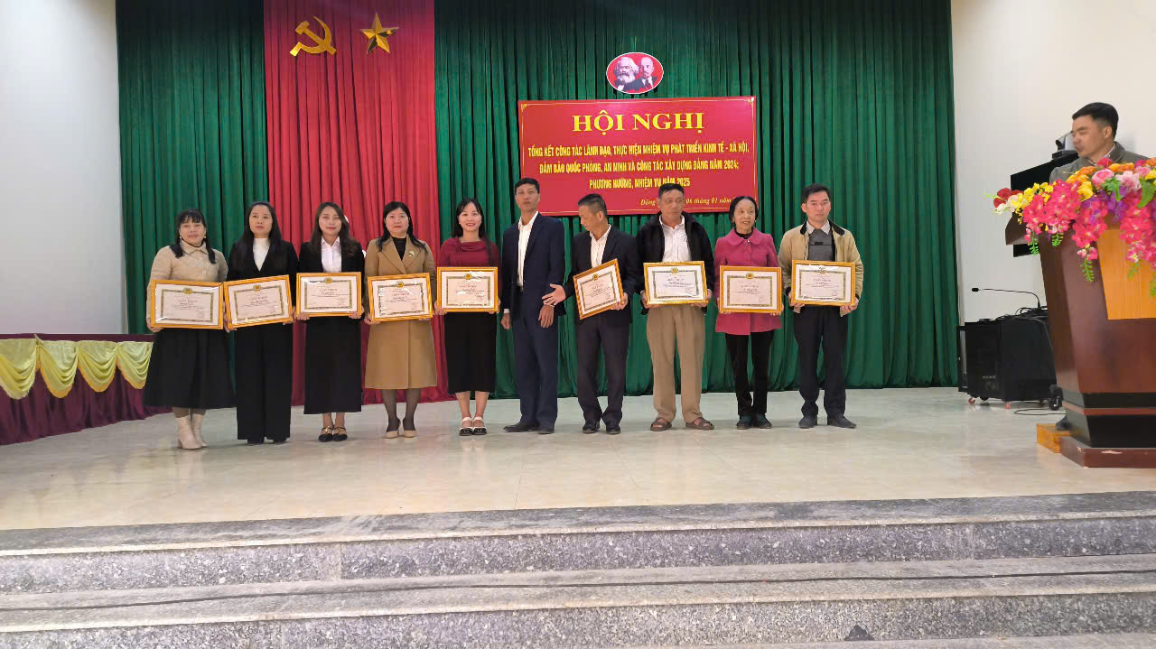 Nhân dịp này, đã có 04 Tập thể, 22 Cá nhân hoàn thành xuất sắc nhiệm vụ năm 2024 được Đảng ủy xã tặng Giấy khen. Chủ tịch UBND xã tặng Giấy khen cho 02 Tập thể, 04cá nhân có nhiều thành tích trong phong trào thi đua của xã năm 2024.