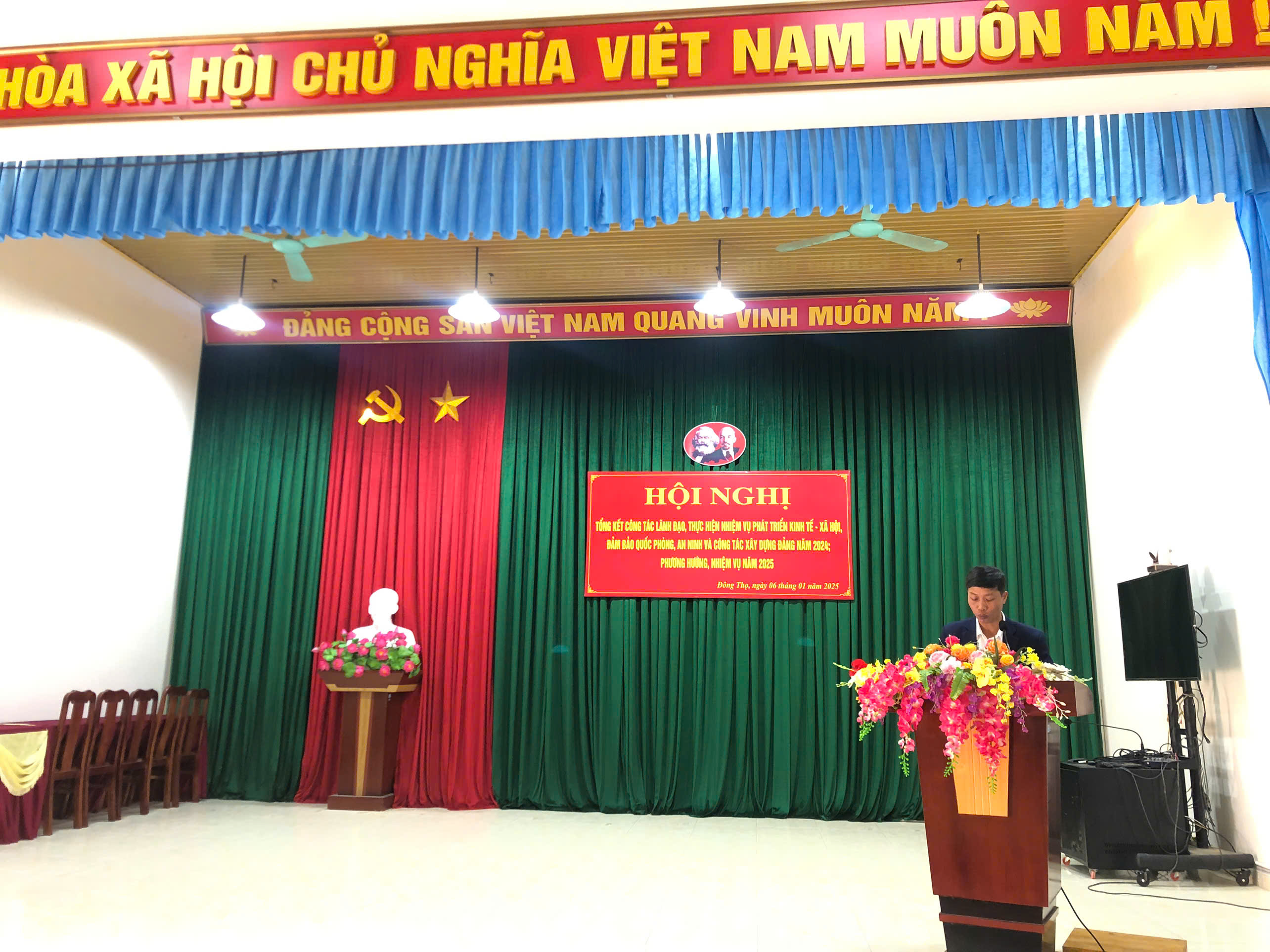 Phát biểu kết luận tại hội nghị, đồng chí Lương Cao Khải – Bí thư Đảng ủy xã đã biểu dương, ghi nhận và đánh giá cao những kết quả của Đảng bộ, chính quyền xã Đông Thọ đạt được trong năm 2024, đồng thời chỉ rõ những tồn tại, hạn chế cần được khắc phục trong năm 2025. Trong đó, đồng chí nhấn mạnh đến những nhiệm vụ giải pháp trong thực hiện nhiệm vụ chính trị, phát triển kinh tế, xã hội, thực hiện các chỉ tiêu nhiệm vụ BTV Huyện ủy, UBND huyện giao. Tiếp tục tập trung làm tốt công tác phát triển kinh tế- xã hội trên địa bàn xã; giữ gìn và phát huy bản sắc văn hóa dân tộc, các điệu múa, hát; thực hiện tốt các chương trình MTQG; chỉ đạo thực hiện tốt việc xóa nhà tạm, nhà dột nát trên địa bàn; quan tâm chăm lo tết cho người người nghèo không để ai bị bỏ lại phía sau; thực hiện tốt công tác tuyển quân; chỉ đạo các chi bộ tổ chức đại hội nhiệm kỳ 2025-2030 đảm bảo đúng quy định và thời gian, các đoàn thể; thực hiện tốt công tuyên truyền các chính sách của Đảng, pháp luật của Nhà nước.